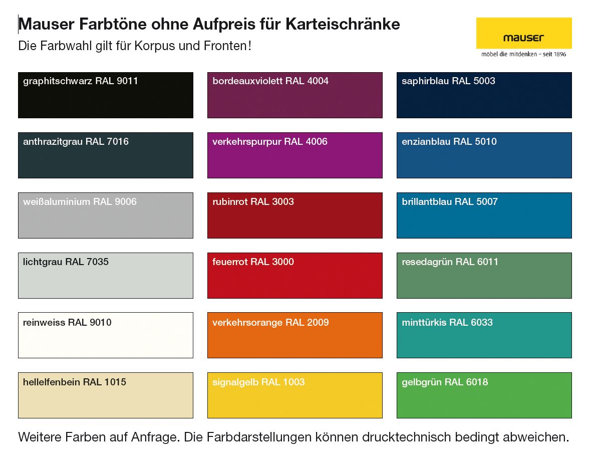 Mauser Karteischrank mit durchgehenden Griffleisten. 6 Schubladen, 3-bahnig für Karteikarten DIN A5 quer, 2 Schwingstützen pro Bahn, Belastung pro Schub: 75 kg. Schübe auf kugelgelagerten Teleskopführungen, voll ausziehbar, geschlossener Boden. Selbstklebende Beschriftungsleiste pro Schublade.Zentralverschluss - per Drehzylinderschloss inkl. 2 Schlüssel. Wahlweise gleich- oder einzelschließend. Doppelauszugssperre, Höhenausgleichsschrauben. Hochwertige Einbrennlackierung. GS-Zertifizierung, 10 Jahre Garantie. Abmessungen: H x B x T 1350 x 800 x 600 mm. Weitere Farben auf Anfrage. Optional: mit Selbsteinzug und Dämpfung.
