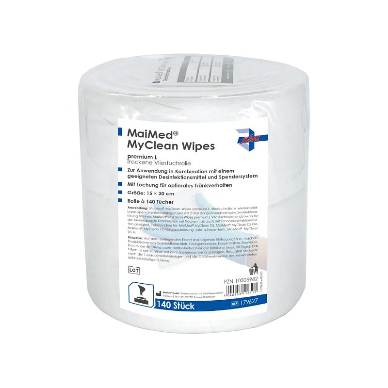 Trockene Vliestuchrolle mit Lochung für optimales Tränkverhalten zum Einlegen in wiederbefüllbares Spendersystem. Sind sowohl für die Anwendung in Kombination mit Flächen-, als auch mit Schnelldesinfektionsmitteln geeignet, insbesondere für: MyClean®DS, MyClean® DS OA, MyClean®FD-Gebrauchslösung, MyClean®DS A.