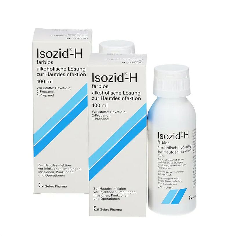 Isozid-H farblos basiert auf 70 % Isopropylalkohol und ist wirksam gegen Bakterien, Pilze sowie behüllte Viren (inkl. Coronaviren). Es eignet sich hervorragend zur präoperativen Hautantiseptik bei unverletzter Haut und sorgt für eine schnelle Keimreduktion ohne Rückstände oder Verfärbungen – ideal für Bereiche, in denen eine klare Sicht auf das Hautareal erforderlich ist. Dank der hautfreundlichen Zusammensetzung ist Isozid-H auch für den häufigen Einsatz geeignet und bietet Anwendern wie Patienten ein hohes Maß an Sicherheit und Komfort.