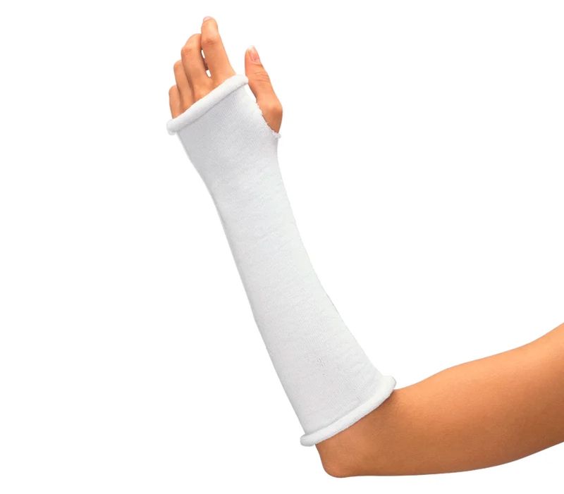 Synthetischer Frotteeschlauch, hautfreundlich, feuchtigkeitsabweisend und elastisch. Auch mit Daumeneinschluss erhältlich.